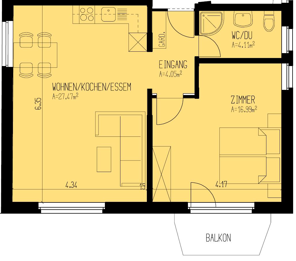 - Bruttomiete 1'045 CHF
